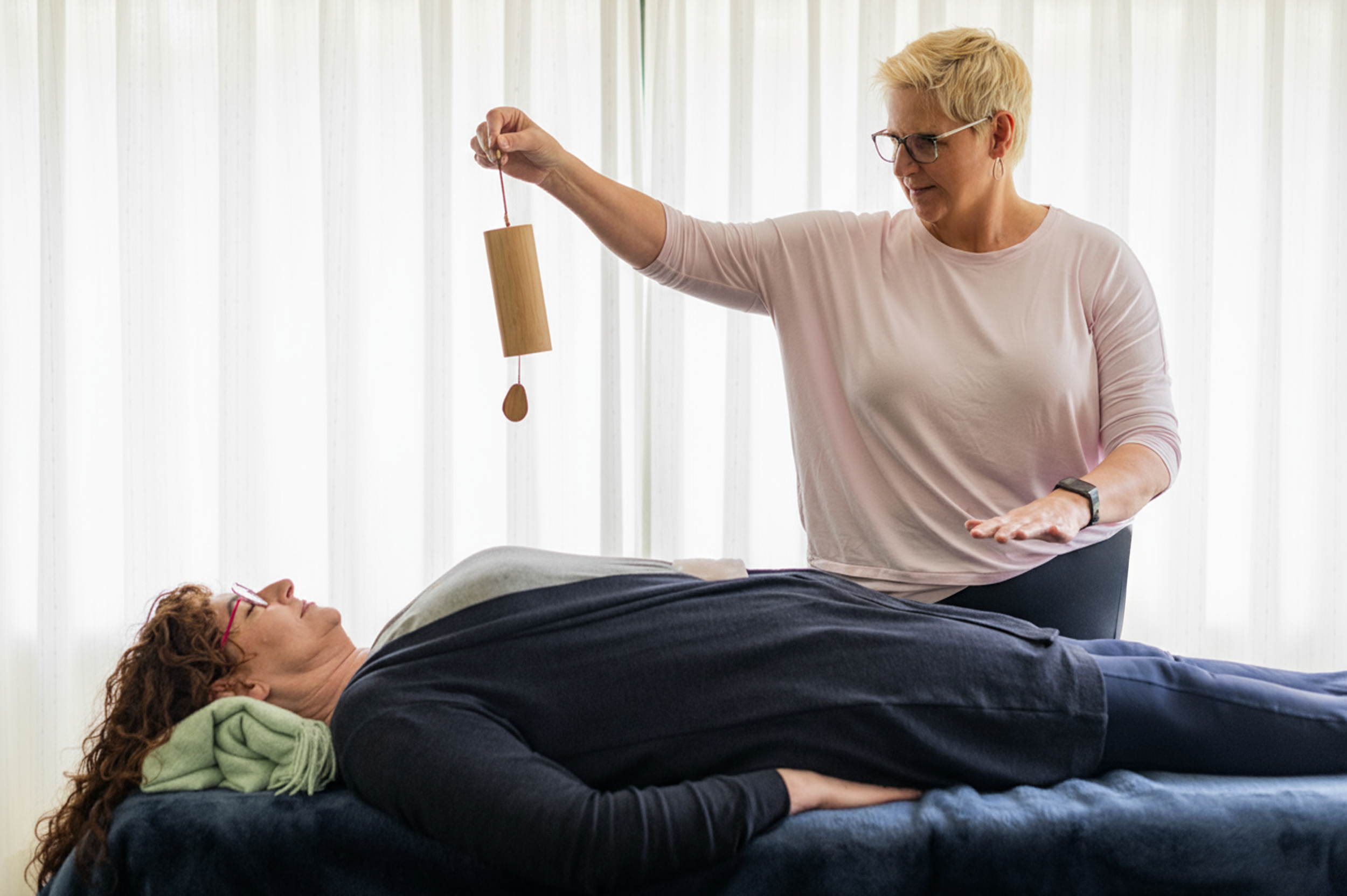 Marie guides the session with care, presence, and trauma-aware understanding, allowing your system to unwind at its own pace. -